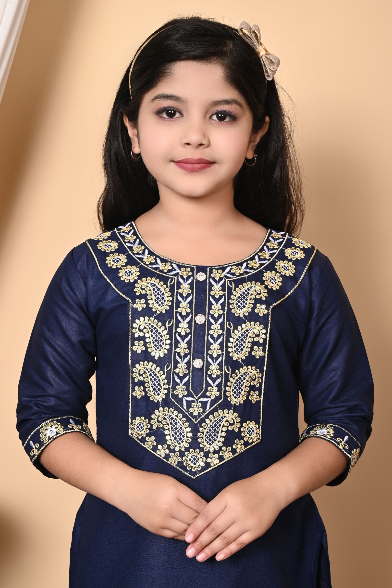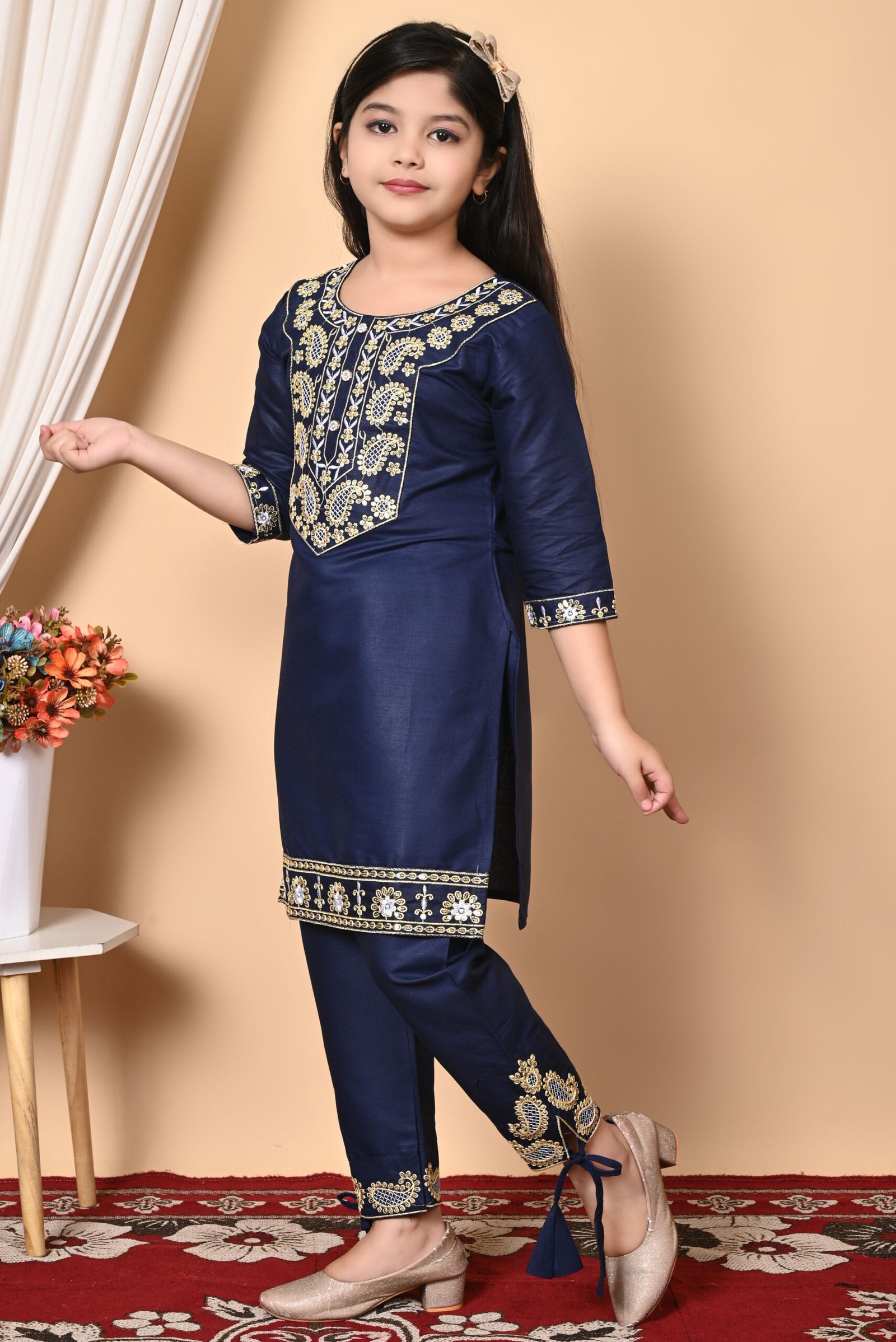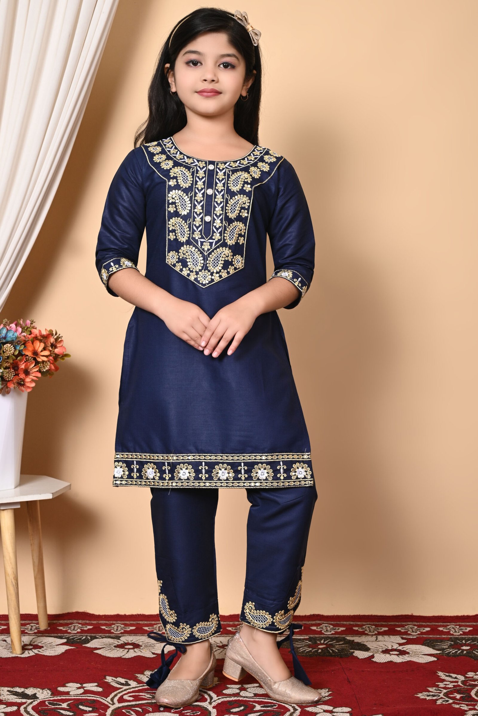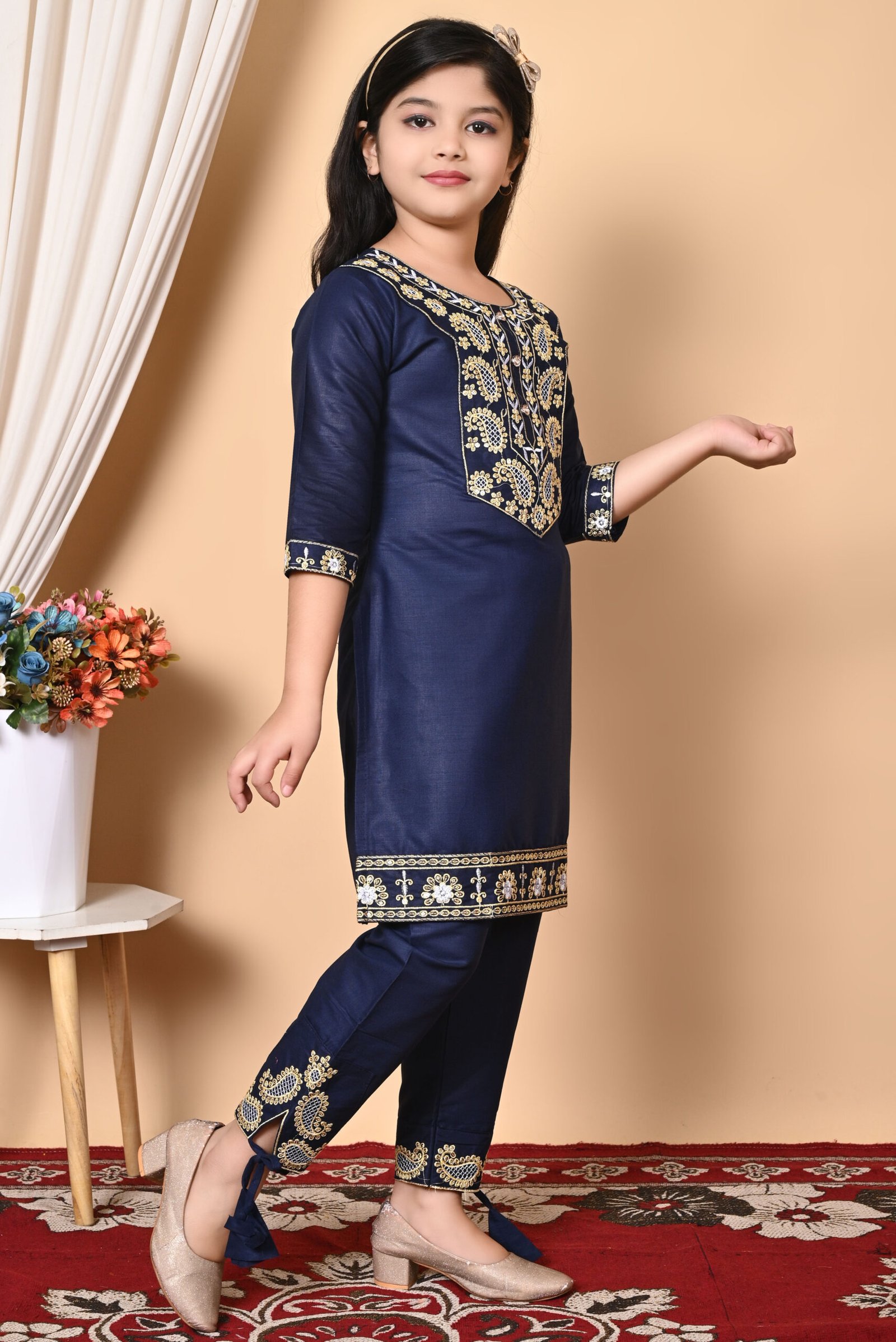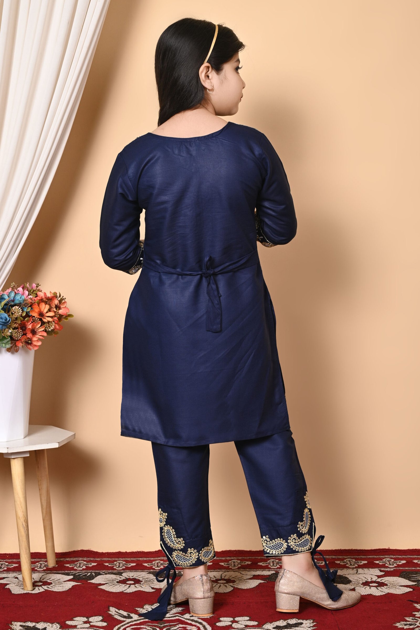 Home Ethnic Dresses Girls Blue Embroidered Kurti with Pant Set (Copy)