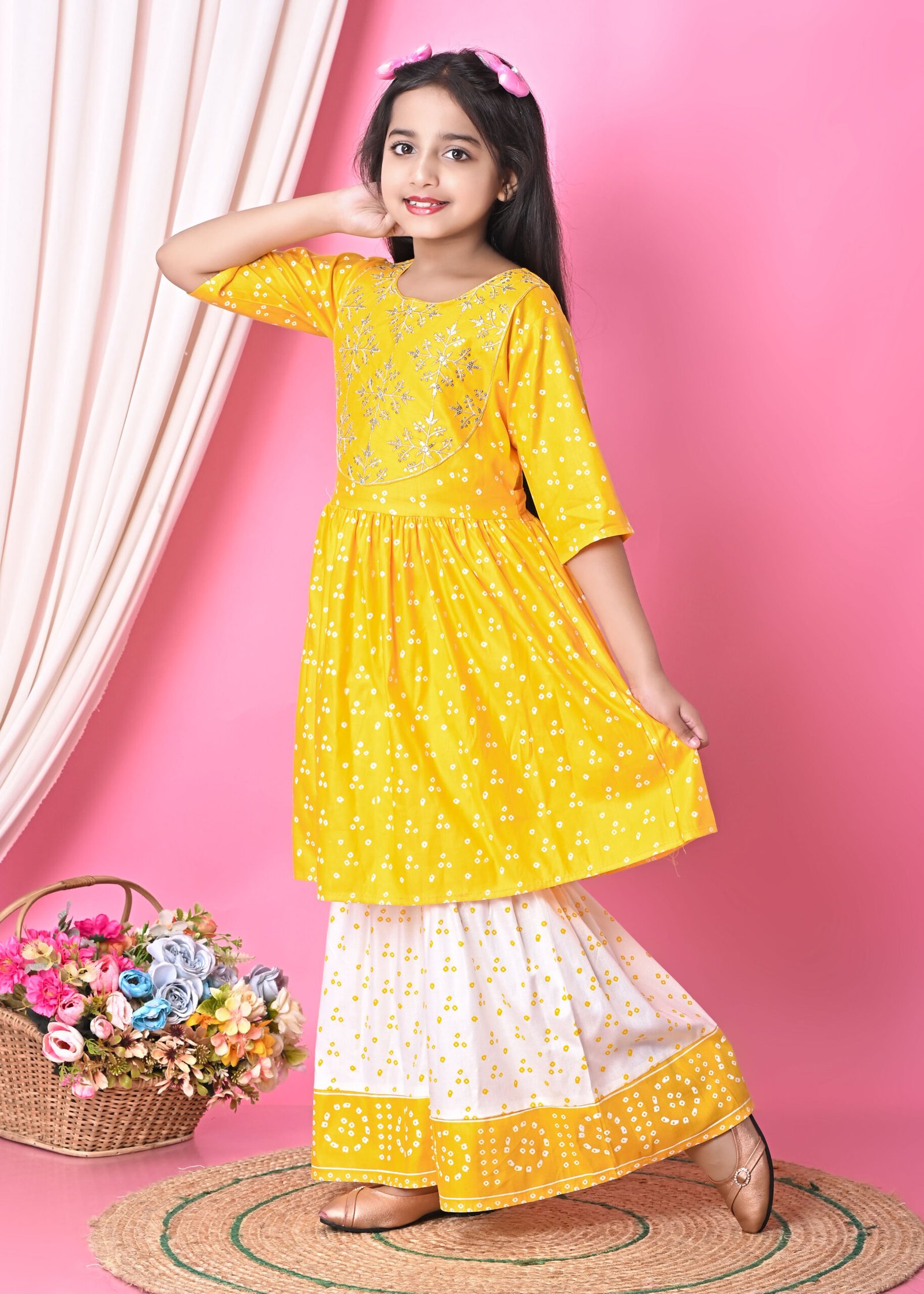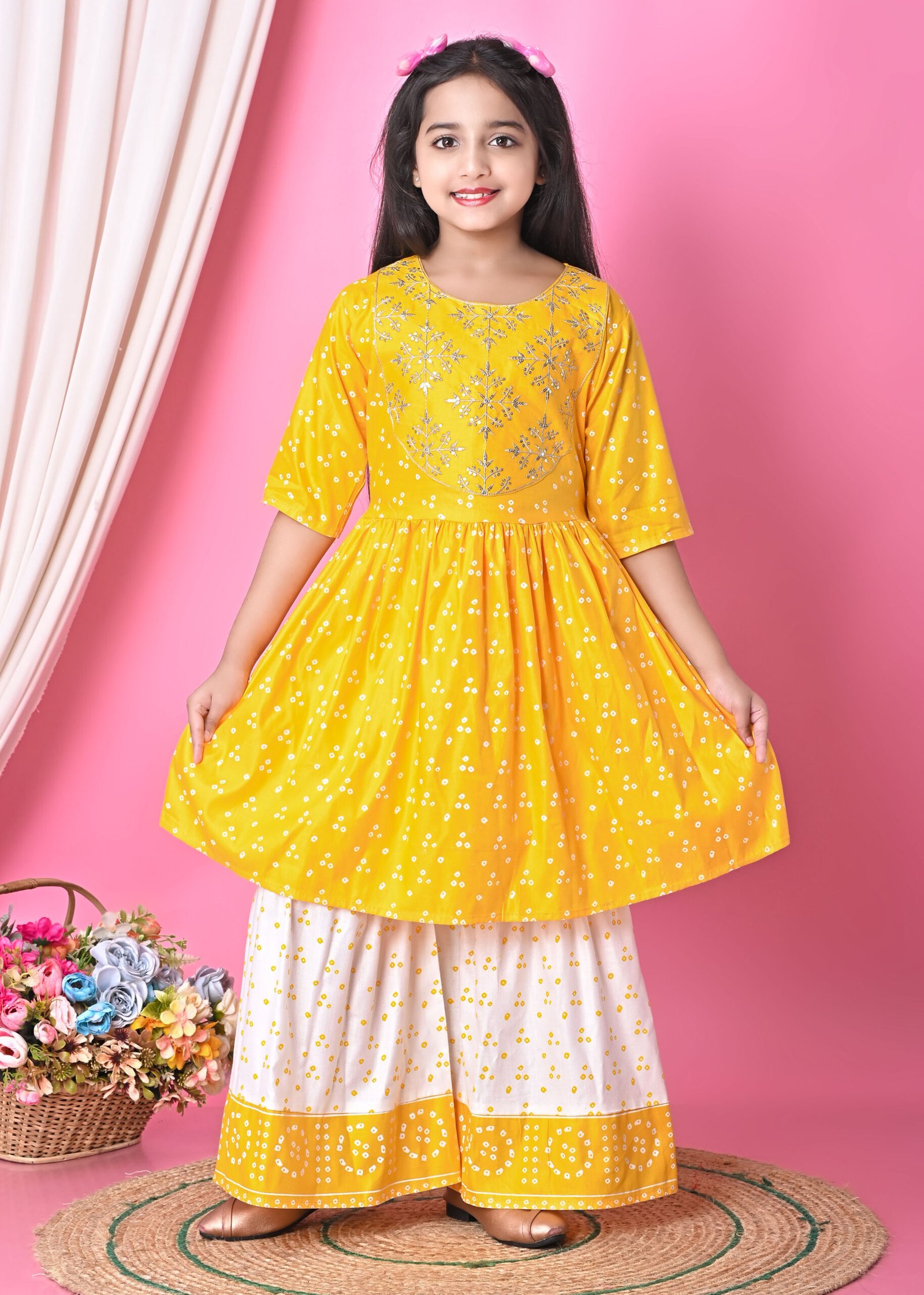 Be the first to review “Girls Yellow Embroidered Kurti with Printed Palazzo Set” Cancel reply